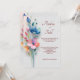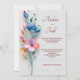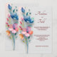 This wedding card features a delicate and elegant floral design with soft pastel colours, including shades of blue, pink, and peach. The flowers are depicted in a modern, minimalist style with smooth gradients and a paper-cut effect, giving them a slightly three-dimensional appearance against a clean, white background. The overall aesthetic is both sophisticated and light, making it a perfect choice for a contemporary wedding invitation that aims to convey a sense of beauty and refinement. Personalize the text regarding the names and details of the wedding. You can download the card to your mobile device or computer. I designed the card with ai technology.