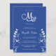 Minimalist Florals Modern Delft Blue Bridal Shower Invitation