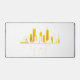 Discover the elegance of minimalism with this geometric city skyline silhouette design. Featuring clean lines and iconic landmarks in a modern abstract style, this artwork uses a limited color palette with dark navy and warm yellow highlights to evoke the beauty of city lights at night. Perfect for posters, t-shirts, mugs, and more, this design brings urban sophistication and trendy flair to your everyday items.