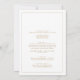 This minimalist gold all in one wedding invitation is perfect for a simple wedding. The modern romantic design features classic gold and white typography paired with a rustic yet elegant calligraphy with vintage hand lettered style. Customizable in any colour. Keep the design simple and elegant, as is, or personalize it by adding your own graphics and artwork. Save paper by including the details on the back of the wedding invitation instead of on a separate enclosure card. Include the RSVP info as well if your guest will be replying electronically (optional).