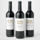 Minimalist gold and black typography personalized wine bottle label on simple white background. Customise age, name, drink name, short text, and birth year. Perfect for birthday present or party.