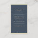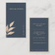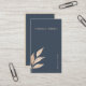 Navy ocean blue background with gold single leaf on the bottom left corner coupled with minimalistic sans serif gold font. Back side holds all information in same font and minimalistic style with golden thin border. Visit our store for more office stationery and accessories in this style