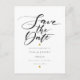 This minimalist save the date card features two gold hearts and an elegant script save the date above your details set in elegant typography. The reverse has additional save the date details, including your wedding website, with your return address and space for your recipient's address. Designed by Thisisnotme©