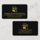 An all black cover is accentuated by a faux gold line near the base of the card. ; Riding on this gold line of success is your prestigious business name alongside the contact details. Near the top is a gold "home plumbing and heating" logo you can use.