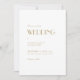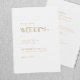 This minimalist gold modern art deco all in one wedding invitation presents both an elegant, black tie formal, and a casual, simple design for a traditional or more rustic marriage celebration. The plain, neutral gold and white layout with unique, classic typography alludes to minimal boho or classy retro making it a perfect design for any event theme.