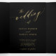 Minimalist gold script all in one black wedding Tri-Fold invitation