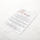 Our wedding menu foil print not only serve as a practical guide for your guests but also double as a stunning piece of art that will enhance the overall ambiance of your reception. The delicate strokes of the calligraphy dance across the pristine white background, exuding a sense of refined beauty that is sure to impress.