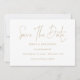 Minimalist Gold Script Wedding Save The Date. Available digitally or printed. Simple elegance with Save The Date in a modern set script.The rest of the text you can easily personalise. Shown here in gold on white however the text and background colours can be changed if you wish via the customise further option.