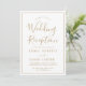 Celebrate your love with this chic and modern gold wedding reception invitation. Designed for a simple yet elegant post-elopement party, this minimalist card features timeless gold and white typography, paired with rustic yet refined calligraphy in a vintage hand-lettered style. Customizable in any colour, you can keep the design as is or personalize it with your own graphics and artwork. RSVP cards are sold separately, or you can include RSVP details on the back for added convenience.