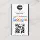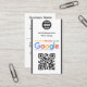 This Google review business card in a minimalist design is accented with black borders on the front side. On the front you also have your logo, a simple message to let us know how we're doing, the google review us on logo and your Google business profile review QR code. On the backside you'll find your basic business information and a personal thank you message. Businesses should use Google review cards for several important reasons: