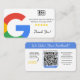 This is a clean minimalist google review business card for small businesses or anyone that has a google business profile. On the front side of the card you have the iconic Google G logo positioned in the bottom left of the card. This logo can be moved to your liking! You also have your logo, a personalized message or call to action to leave you a review on Google. You have an image depicting 5 stars which serves as a cue to let your customers know that a 5 star review is expected. Of course you must deliver on your product quality and service for this to happen. Lastly, there is a thank you message at the bottom. On the back side of the card you have a personal message at the top, simple instructions on what to do, your QR code in the centre and your business information to the right of the code. This card is 100% customizable, you can change the images, the text, the fonts and the colours. You could also just plug in your info and add your logo images and run with it. If you need any help with this template please send me a message and I will gladly assist you. Thanks! Sandy