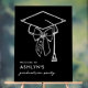 Celebrate your graduate’s big day with this stylish minimalist graduation party acrylic welcome sign! Featuring a hand-drawn doodle of a graduation cap adorned with a sweet bow, this modern black and white design is both elegant and timeless. Perfect for high school or college grads, this sign is easy to personalize with your graduate details. A classy choice of design for your graduation celebration!