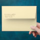 This envelope features a minimalist design with centred text on a plain background, creating an elegant and sophisticated look. The muted grayish-brown colour palette contrasts subtly against the white backdrop, emphasizing clarity and simplicity. Utilizing clean, modern sans-serif fonts, the typography is bold yet understated, making it ideal for formal or personal correspondence. The layout focuses entirely on typographic hierarchy, ensuring that the names and address stand out without any additional graphics or embellishments. Perfect for those who appreciate a contemporary aesthetic in their stationery.