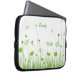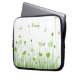 Minimalist Green and White Poppies Meadow Name Laptop Sleeve