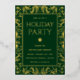 A sleek, modern holiday invitation with green background and gold foil accents. Ideal for formal gatherings and upscale holiday events.