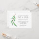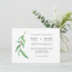 This ultra stylish wedding invitation features watercolor look green leaves on a stem, with spare black text on a clean white background.