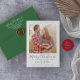 These minimalist green Merry Christmas card envelopes are perfect for a simple holiday card or invitation. The design features classic green and white typography paired with a rustic yet elegant script font with hand lettered style. Personalize the envelope flap with your name and return address.