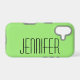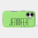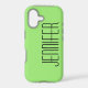 This modern, minimalist case for the iPhone is a bright, warm neon green with name in jumbo giant size simple black typography. Simple, elegant, and chic! Easy to personalize, or delete example name. All Rights Reserved © 2026 Alan & Marcia Socolik.