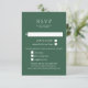 Minimalist. Green wedding RSVP With Meal Choice Card