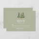 Minimalist Green Winter Snowy Pine Trees Wedding RSVP Card