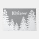 Minimalist grey white pine tree silhouettes doormat