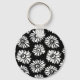 Minimalist Groovy Black and White Daisy Pattern Keychain
