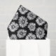 This black and white floral pattern features stylized daisy flowers. It is a girly, retro, groovy print with a strong boho aesthetic and clear 70's inspiration.
