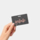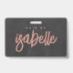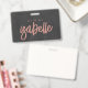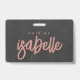 A modern minimalist dusty pink brush script name makeup artist badge, on a distressed charcoal grey black background. Edgy modern style. Great for fairs and conventions.
