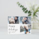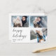 Simple three photo Christmas postcard featuring a modern calligraphy happy holiday heading image, the couples names and year's date. The back of the postcard is prepared for the couples address and message. Great for someone who likes modern minimalist photo postcards.