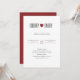 Announce your wedding in style with this elegant, minimalistic invitation. Featuring clean, modern fonts on a crisp white background, this design focuses on simplicity and sophistication. The couple’s names are separated by a subtle red heart, with the date and time elegantly highlighted in red. Perfect for couples who appreciate a timeless, understated look. This minimalist wedding invitation is red on the back, with the couple’s names which separated by a simple heart.