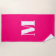 Customize monogram initial hot pink fuchsia and white Beach Towel