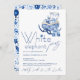 Choose this minimalist Christmas party invitation featuring a beautiful sleigh decorated with Blue Nordic Scandinavian folk art and filled with Christmas gifts, and pretty minimalist handwritten text.