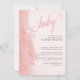 Girl baby shower invitation with pretty ink wash and vintage texture in shades of peach blush pink. "baby" is lettered in elegant calligraphy and the invitation typography is fully editable. Simple, modern minimalist design template and easy to personalize. Please browse my store or my Ink Wash collection for alternative styles and matching items.