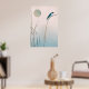 Blue, green, and light pink, muted Japandi poster of a peaceful bird and bamboo stalks. Add the calming influence of Japandi artwork (a blend of Japanese and Scandinavian styles) to your office or home decor. Relax in the moment with this simple, modern, and minimalistic original artwork.