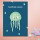 Minimalist Jellyfish Personalized Blue Birthday Card