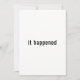 This simple yet elegant minimalist modern black and white just married wedding announcement and reception card features the simple text "it happened" text on the front and your wedding and reception information on the back, including your guests replying via your wedding website or social media. Easy to customize with your own text. More items with this design can be found in my It's Happening Minimalist Wedding Suite in my Zazzle store: