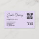 Add a touch of elegance and creativity to your brand with this minimalist lilac purple business card. Featuring a refined script name paired with clean modern typography, this design includes customizable text fields for your company name, job title, email, website, and social links, plus a built-in QR code for seamless digital sharing. The soft lilac tone offers a professional yet artistic aesthetic—perfect for beauty experts, designers, photographers, stylists, and consultants. Understated and sophisticated, this layout is fully editable and print-ready for your modern brand.