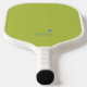 This modern pickleball paddle design features a stylish lime green background on one side and burnt sienna on the other, with a text line for your name or initial in blue handwritten script text for a look that is simple and stylish, yet professional. Makes the perfect gift for Christmas, birthday, Mother's Day, Father's Day, Grandparents' Day, graduation and more.