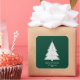 This minimalist holiday design showcases a stylized Christmas tree crafted from thin, continuous lines or geometric shapes, topped with a tiny star for a festive touch. The design is in white ink on a solid-coloured background like forest green. With its modern, elegant appeal, this line-art Christmas tree design is perfect for anyone looking to send sophisticated and understated holiday gift.