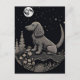 Minimalist Line Art Of a Dachshund On a Moon Postcard