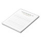 A professional lined notepad with a minimalist design in an emerald green and gold colour palette. Custom name and title position role and company or custom text presented on a simple white background. Personalize using the fields provided or use the 'message' button to contact the designer for help.