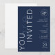 Create custom business event invites for your brand with this corporate navy blue Invitation. You can add your logo and event details as well as your company details and create personalized invites for your your launch party, gala dinner, store opening or conference. The trendy typography design writes 'you are invited' and the minimal layout makes this party announcement super versatile and can suit any brand or event.