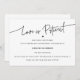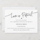 Postponing a big event like your wedding can be stressful, but you can still look stylish with this modern and minimalistic change of plans template card. It says "love is patient" in stylish script font at the top with a little heart. The background is white.