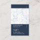Minimalist marble business card with navy blue background and grey marble stripe in the middle of vertical standard business card with silver vertical stripe on the right side. Elegant minimalistic font is used for all customised information