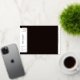 Wedding invitation with solid foil front side, excluding spaces for text at left and right.