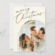 Minimalist Merry Christmas Script Five Photo Beige Holiday Card