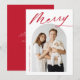Minimalist Merry Red Script Arch Photo Holiday Card