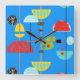 This Minimalist Modern Artist Acrylic Art Wall Clock is the perfect mix of mid century modern, abstract shapes, and kitsch. The 1960s style, minimalist art design features a bright cobalt blue normally seen only on vintage flight attendant uniforms. The vibrant blue creates a backdrop for a multitude of organized shapes in colours of red, aqua, yellow, black, and white. There is even a green, boomerang-shaped artist’s palette with blue, pink, red, aqua, and orange circles of paint. An abstract paint brush stretches across the palette with red paint droplets splattering onto an aqua half circle. This fab design is perfect for any artist, lover of art, or crafter.