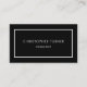 A simple white square border accentuates your name on the front of this modern style black business card template. This double-sided card has sample text on the back for you to personalize with your own business information. Perfect for consultants and other business professionals.