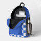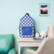 This backpack features a trendy chequerboard pattern in blue and white. The colours are fully customizable in the Design tool. Personalize it with name in white on blue front pocket.